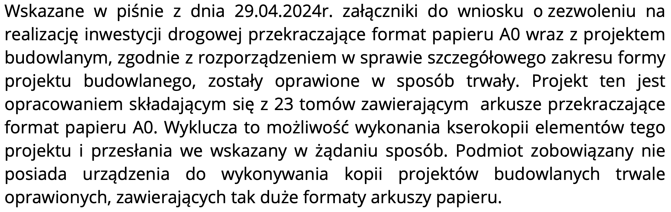 Niestety, nawet po otrzymaniu wyroku sądu Urząd Miasta (Wydział Urbanistyki i Architektury) robi wszystko, aby utrudnić mieszkańcom dostęp do dokumentów, na przykład udając że dokumenty ma tylko w formie papierowej, podczas gdy całość projektu budowlanego jest w wersji elektronicznej.
